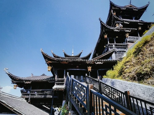 장가계에 위치한 72층 높이의 이 건물은 높이 109.9m로 세계에서 가장 높은 목조 건물입니다. 투자족 건축 양식을 주로 특징으로 하며, 아름다운 조명 쇼, 무형문화유산 체험, 그리고 지역 특산 음식을 자랑합니다.